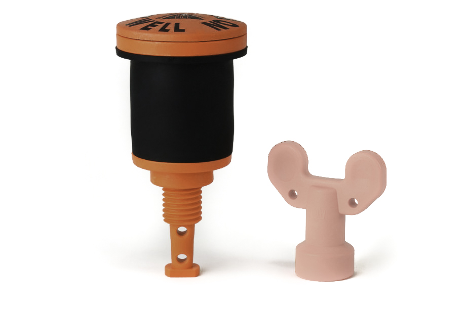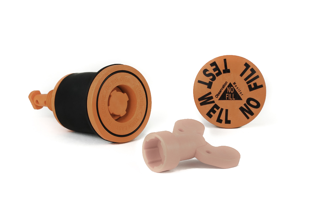The Flushlock Locking Well plug is designed to secure any round opening within the diameter of its expansion gasket. This dual rubber gasket creates an air and watertight seal preventing any contamination of your well between testing periods. With its domed top, you don't have to worry about water pooling on the lid either. The signature loopholes below the well seal are ideal for securing your bailers, pumps, or other sampling devices for easy retrieval. The Key Lock design prevents tampering by anyone without a key. Key Sold separately
