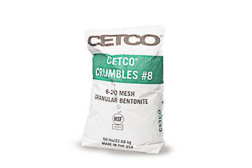 CETCO CRUMBLES sealing and plugging agent is a granular bentonite product composed of polymer-free, dried bentonite in 8-20 mesh size. Derived from natural Wyoming sodium bentonite, Crumbles can be used for sealing and grouting well casings and earthen structures. CETCO CRUMBLES are certified to NSF/ANSI Standard 60, Drinking Water Treatment Chemicals -Health Effects.