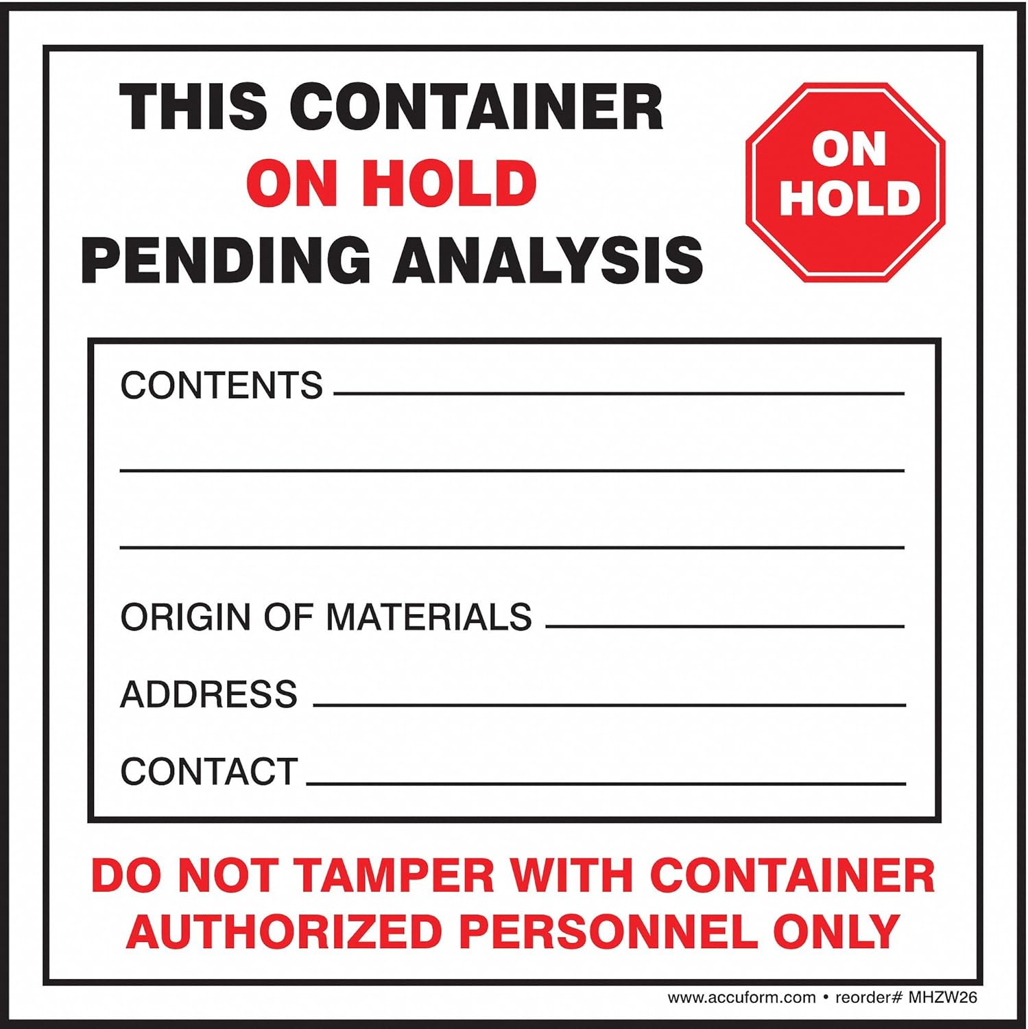 "This Container on Hold, Pending Analysis"
