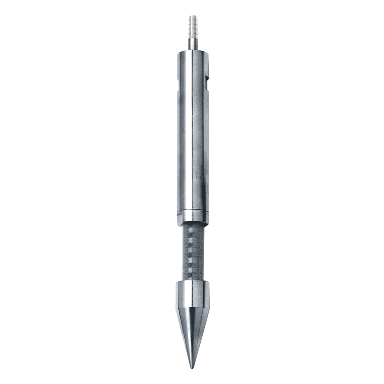 Gas Vapor Probe Retract-A-Tips are driven into the soil and opened for sample extraction. Retract-A-Tips are used to collect soil vapor samples below the ground surface, usually at discrete depths. Desired sampling points may be reached with an AMS Slide Hammer or Electric Rotary Hammer Drill with GVP Drive Extensions, and an Extension Drive Adapter.